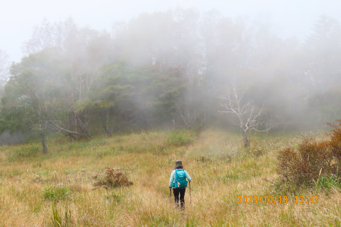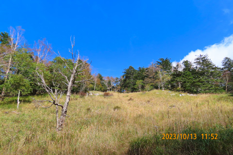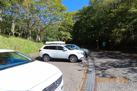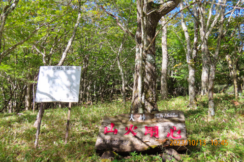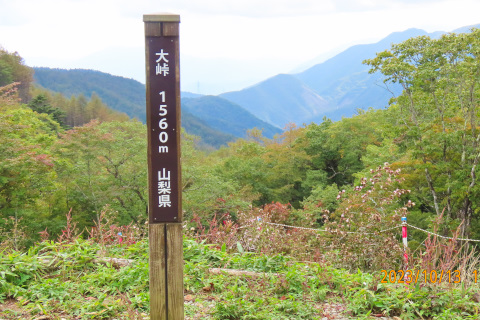 をナビで設定し車を走らせて林道を上がっていくと、途中で小石の落石があちこちに出現して きたので除けながらも進んでいくと路面の落石と凹凸で車の底を擦ってしまった。どんどん悪 路になっていくので不安になり地図で確認すると、遠回りの通行止めルート道を走っていたこ とが分かった。その後、林道を引き返し走行していると車体の下側から枝か何かが挟まってい る音が聞こえてきた。走行に支障がないと思い正規のルートを確かめ大峠に無事辿り着いた。 大峠から往復約2時間半の登山を楽しんだ。峠に着いたときは晴れていたが山頂付近でガスが 濃くなり曇ってしまい富士山の展望はかなわなかった。残念だったが秋の雰囲気を味わうこと ができて満足しながら登山口に戻ってきた・・・・・・・・・・・・・・・・・・・・・・・ 帰ろうとして車を走らせるとやはり車体の下から音が聞こえてきたので停車して車の下を覗 き込むと底カバーが外れてぶら下がっていた。ショックである。これは素人ではなおせないと 判断し整備工場を探し大月市内のお店で応急処置をしてもらった・・・・・・・・・・・・・ 整備工場では、受付の方の快い対応、そして社長さんの温かい対応に触れてとても嬉しかっ た。連れと「トラブルはあったけど今日はついてるね」と話しながら山梨の人の人の良さ・有 難さを感じた次第。そして山梨登山のよい思い出としてこれからも次の山に元気にチャレンジ したいと考えている・・・・・・・・・・・・・・・・・・・・・・・・・・・・・・・・・