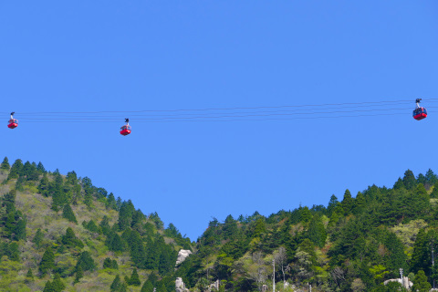 ロープウェイが何台も行く