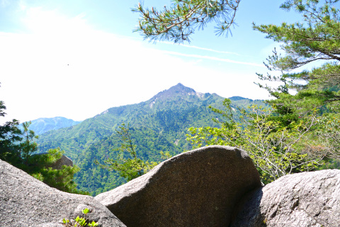 ございしょだけ 日本二百名山。花崗岩の奇岩・奇石と花を愛でる変化に富んだ山。展望のよい山頂からロープウェイで楽々下山。