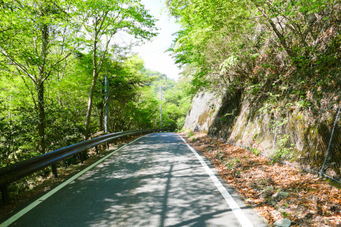 温泉街を抜けて車道を行く