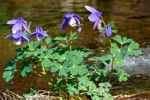 傍らにオダマキの花