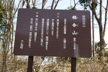 5分 40分 5分 40分 稼いできたが、登山道がここから始まる。赤い鳥居をくぐり急な坂道を登っていく。いきなり の坂なので脈拍がかなり速くなってきた。平らなところに出ると神社の境内があり、そこから 一登りすると山頂に着く。山頂は360度の展望が楽しめた。特徴的な形の荒船山、雪を被っ た浅間山に上越国境の山々等見て休んでいた。すると突然赤ちゃんの泣き声に似た声が近く で聞こえてきた。近くにいた人が「あれはクマだよ」と教えてくれた。数日前に付近で見かけ たという。帰りみんなで鈴を高らかにならして下山した・・・・・・・・・・・・・・・・・・・・・・・・・・・・・・。
