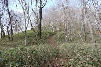 30分 80分 50分 20分 植林の中の急登の階段をしばらく進むと、送電鉄塔の所に出る。少し先の場所の展望が良く 五十里湖や高原山がよく見える。そこから杉・檜の植林地を過ぎると明るいブナなどの落葉 樹に変わり尾根伝いに登ってゆくと傾斜がゆるくなり山頂に着く。山頂は樹林におおわれ隙 間から景色が見える程度で、展望はほとんど期待出来ない。東屋で休憩したあと帰路は送 電鉄塔から公営住宅の方を回って県道249号に出た。トンネルをくぐって駐車場に戻った。