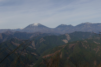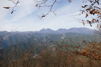 杉の樹間から覗く北側の山々