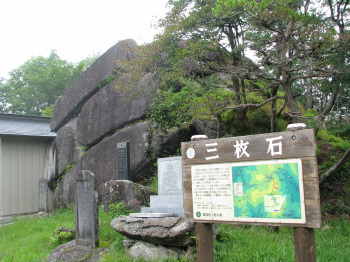60分 20分 50分 15分 ツツジの群生しているところを軽快に歩くことができた。天狗の庭を抜けると空が開けて大きな石 のかたまりが出現した。三枚石である。休憩をとってさらにツツジ平へと進むと横根牧場の最北端 に出る。方塞山に着いたのだ。牧場の柵に沿って下る道があったので歩いて行くと広い舗装され た都沢林道に出た。この舗装路を暫く行くと、「巴の宿」という案内表示があったが、通過して古峰 ヶ原湿原に向かう。湿原といっても木道はなく眺めながら先に進むとすぐ駐車地についた・・・・・・。