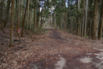 稜線まで登ると岩場が現れるが、ここは巻道を進む。巻道を5・6分ほど下りると、細野ダム林道からの分岐にぶつかるが