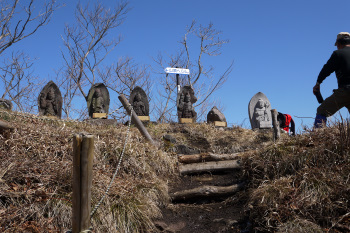稜線に出ると石像群