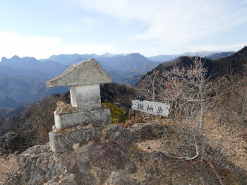 石祠の山頂に着く(後ろは大桁山)