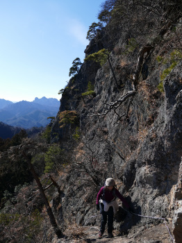 絶壁の岩場を行く