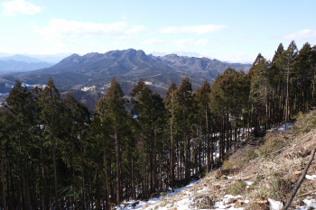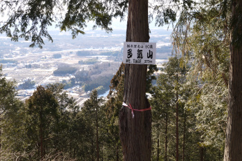 25分 15分 10分 をとられたが、しっかり踏みしめて高度をかせぐ。樹林帯がしばらく続くが、そこを抜けると視界 が開け、台形状の山頂部まで少しの登りが見えてくる。登り切ると台上の山頂部は比較的広く 遠くの山や宇都宮の市街地がよく見え展望が良いのだ。しかし残念なことに北西側は樹木が多 く展望がほとんどないので、見える所を探して雪道を歩いていると西側奥に何と日光連山の美 しい姿が捉えられたではないか。感動である。景色を十分堪能して山頂を後にした。帰り道に 多気不動尊にも立ち寄りお参りすることができた・・・・・・・・・・・・・・・・・・・・・・・・・・・・・・・・・・・・・。